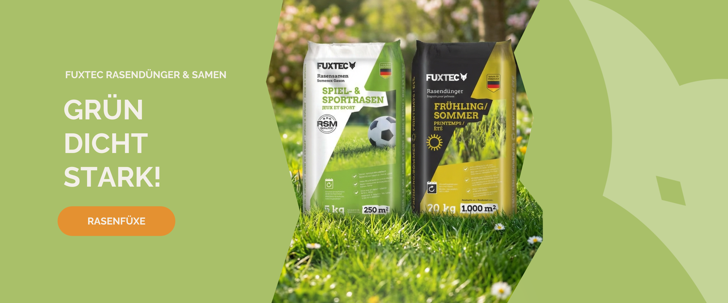 Für eine dichte und widerstandsfähige Grasnarbe empfehlen wir hochwertige 👉 Rasensamen von FUXTEC, die speziell für Nachsaat und Regeneration entwickelt wurden.