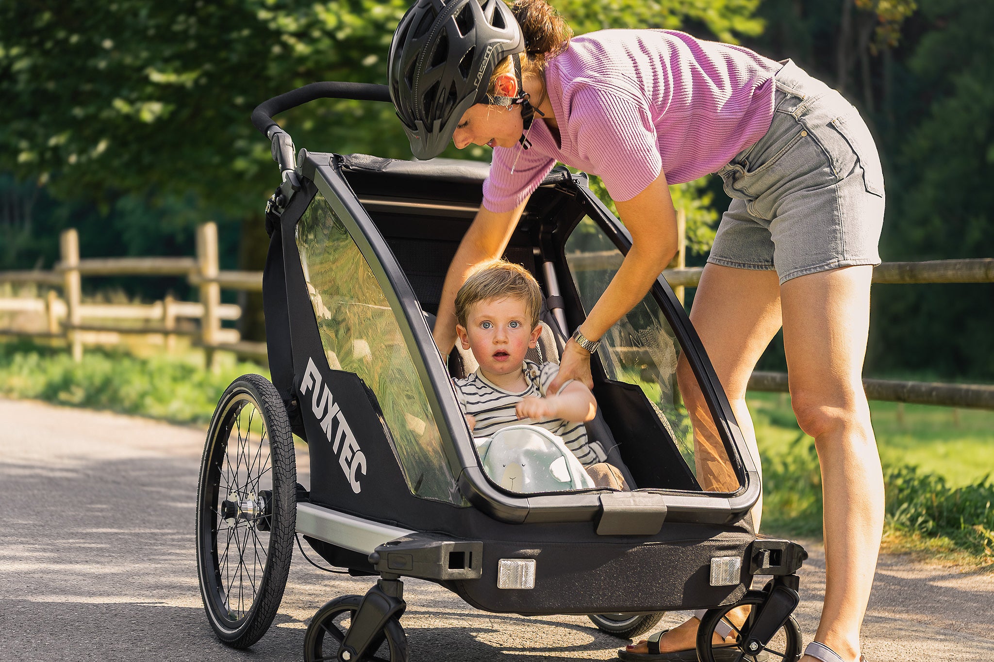 Met een FUXTEC fietskar kun je je passies delen met je kinderen, ongeacht het seizoen en de activiteit. Om te wandelen, fietsen of joggen. Perfect voor gezinsuitstapjes, winkeluitstapjes of avonturen in de natuur - onze fietskar is de ideale oplossing voor jouw behoeften. We bieden je een unieke fietskar als vracht- en kinderkar in twee versies: het standaardmodel en een versie met een extra joggerwiel. Ontdek ons assortiment en vind de ideale metgezel voor je fietstochten.