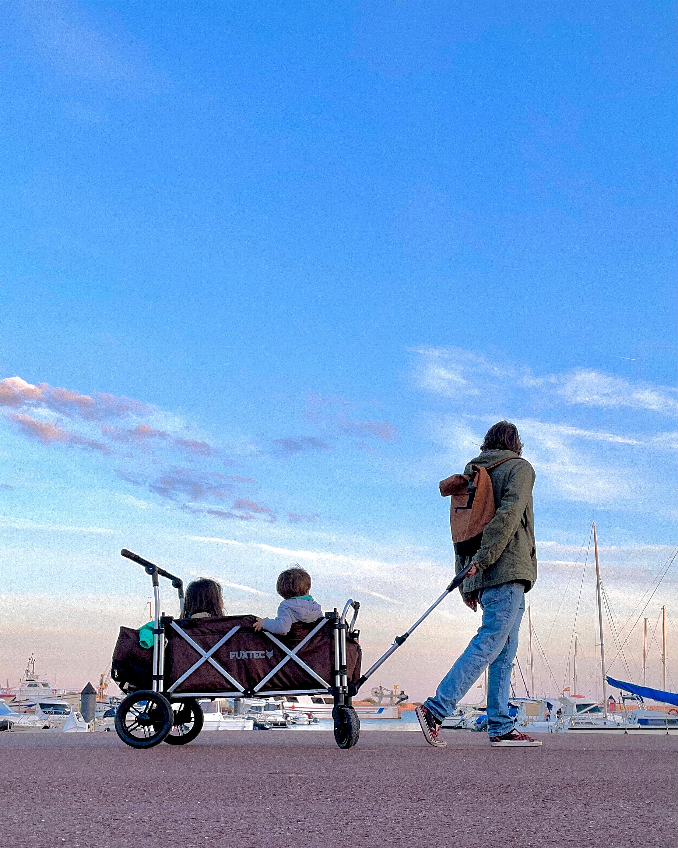 - Door de diep gecapitonneerde binnenkant (gestoffeerde vloer en rugleuning) zitten de kinderen nog veiliger in de handkar.